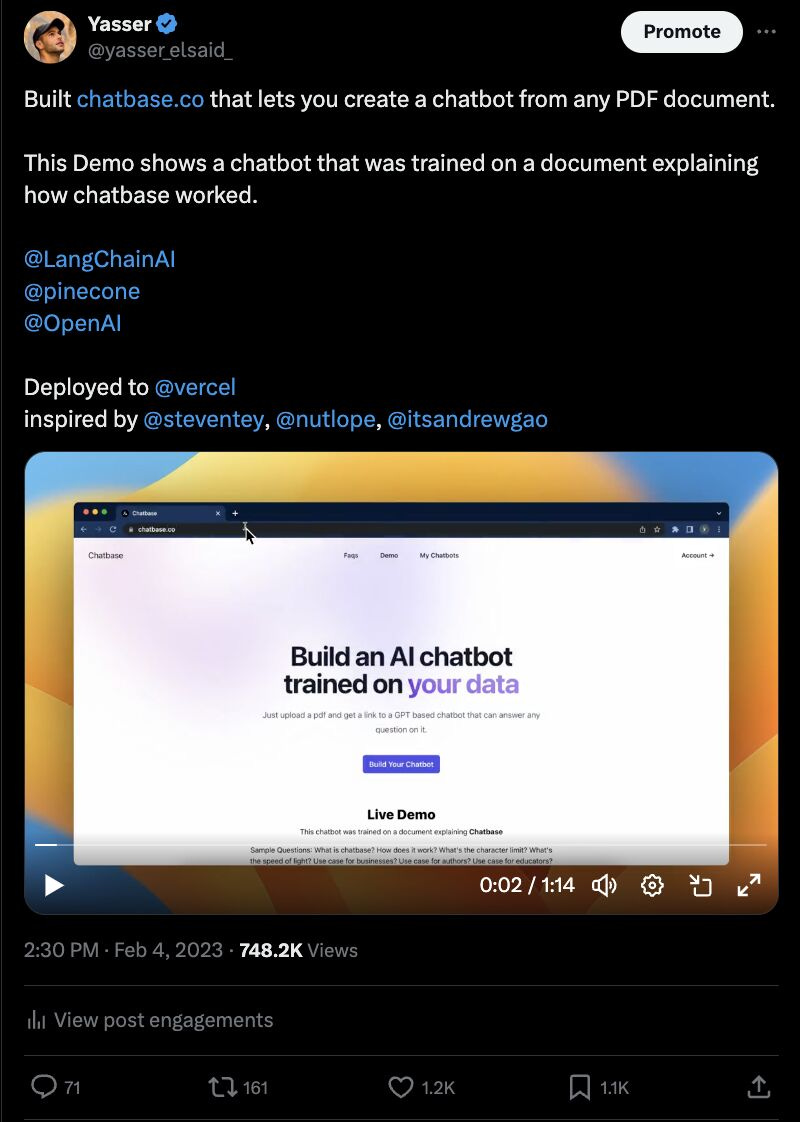 But the viral moment was just the beginning. AI influencers started posting about Chatbase, amplifying the reach even further.